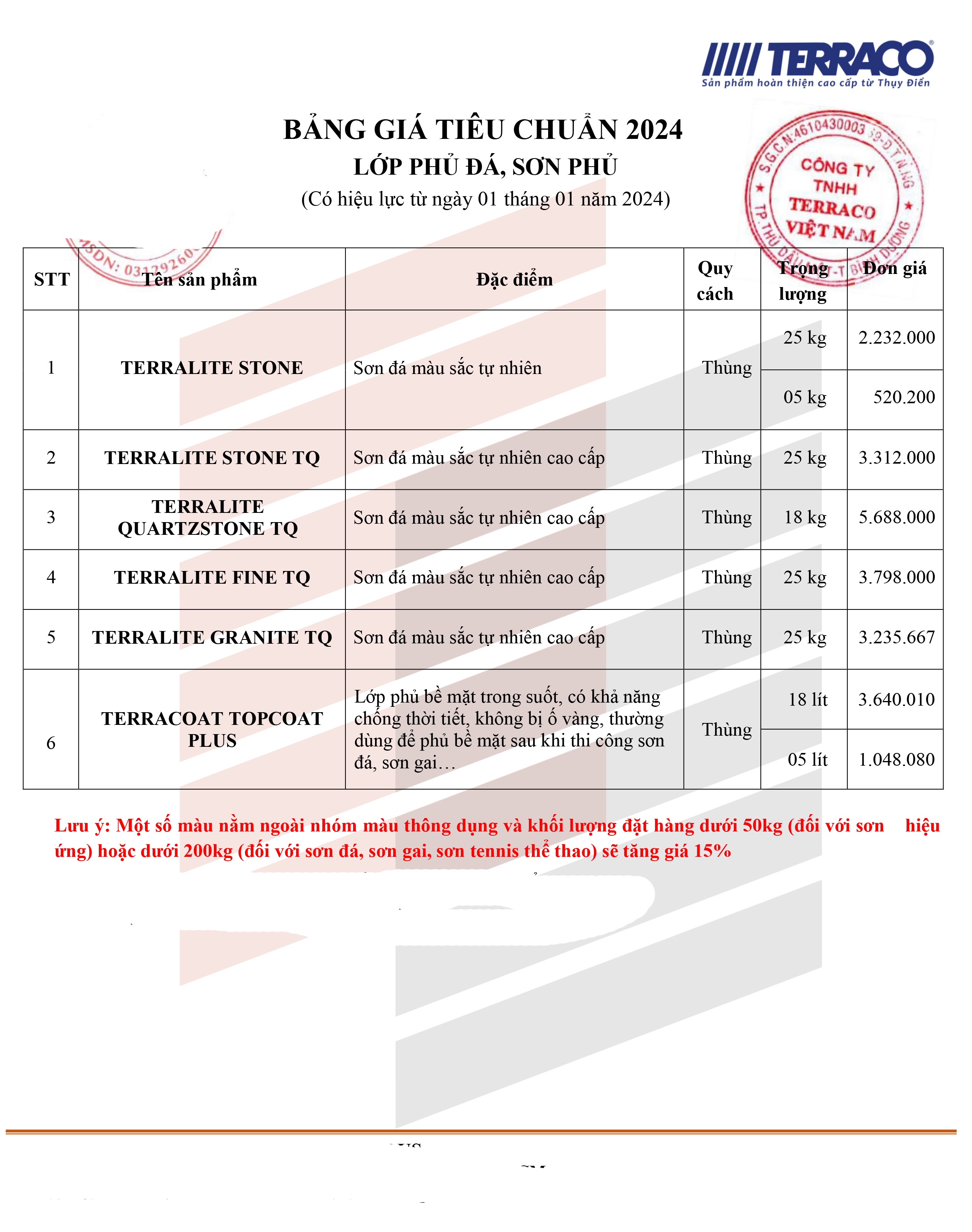 BÁO GIÁ SƠN GIẢ ĐÁ TERRACO NĂM 2024