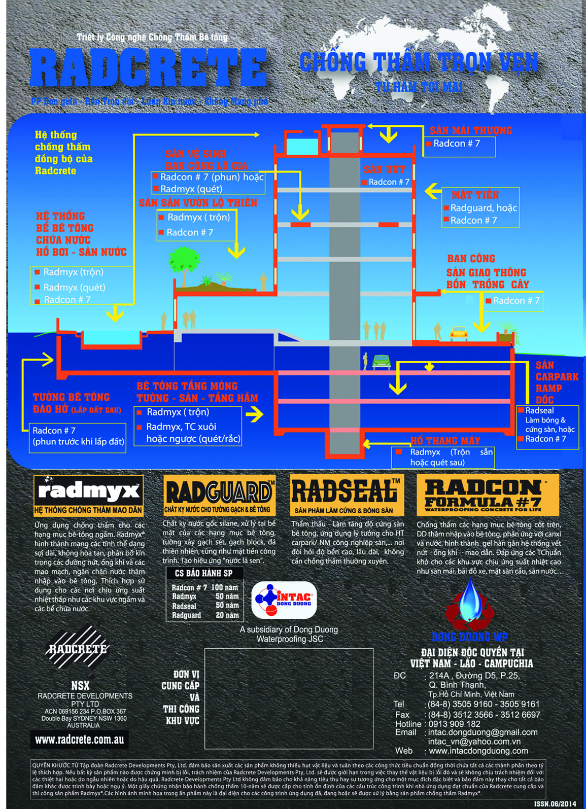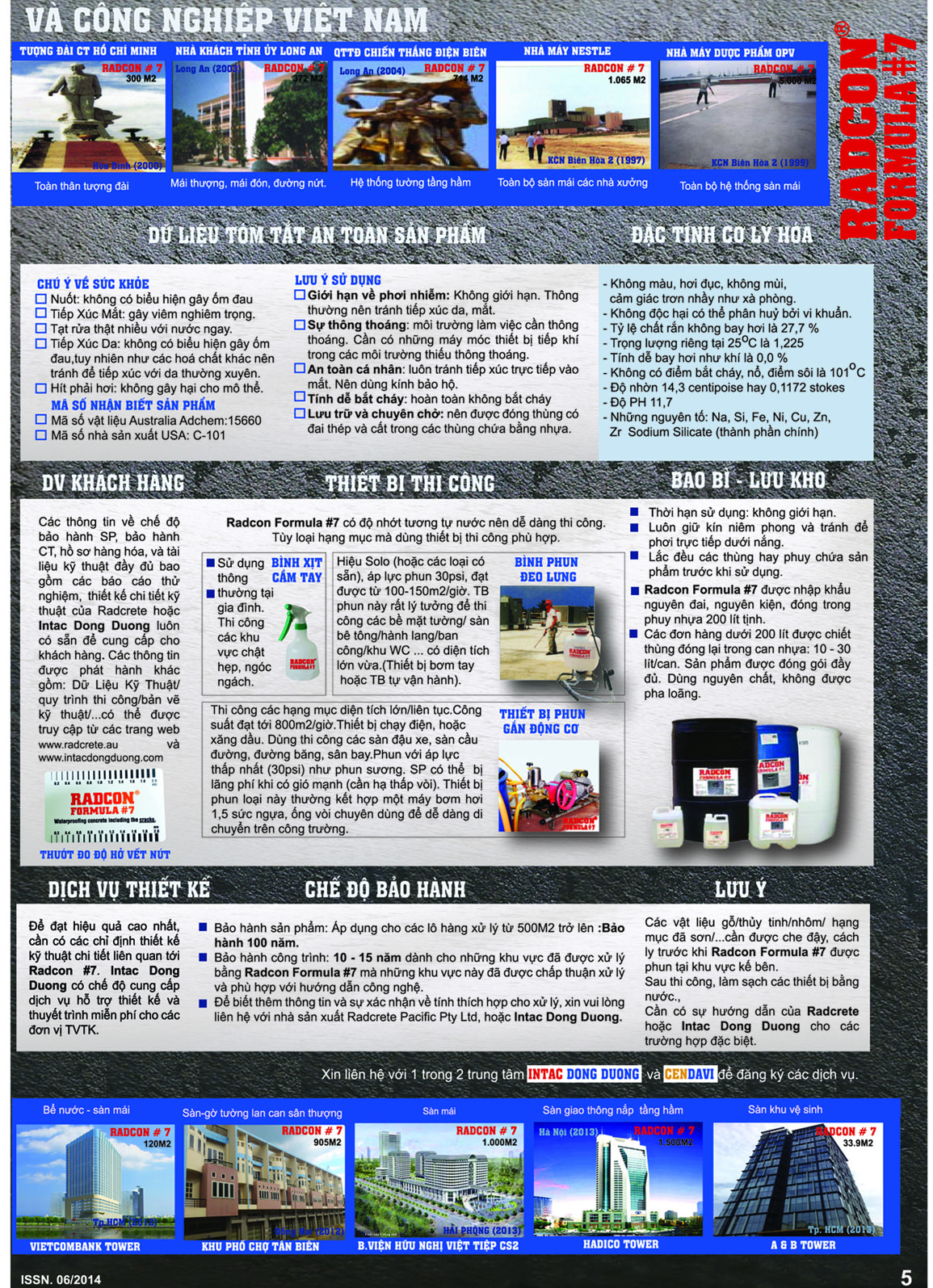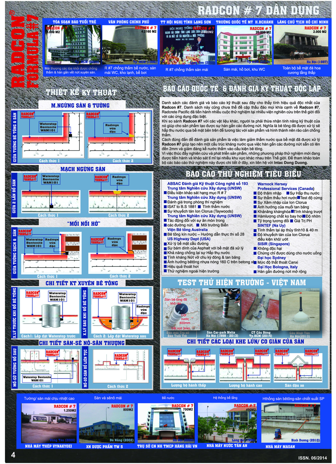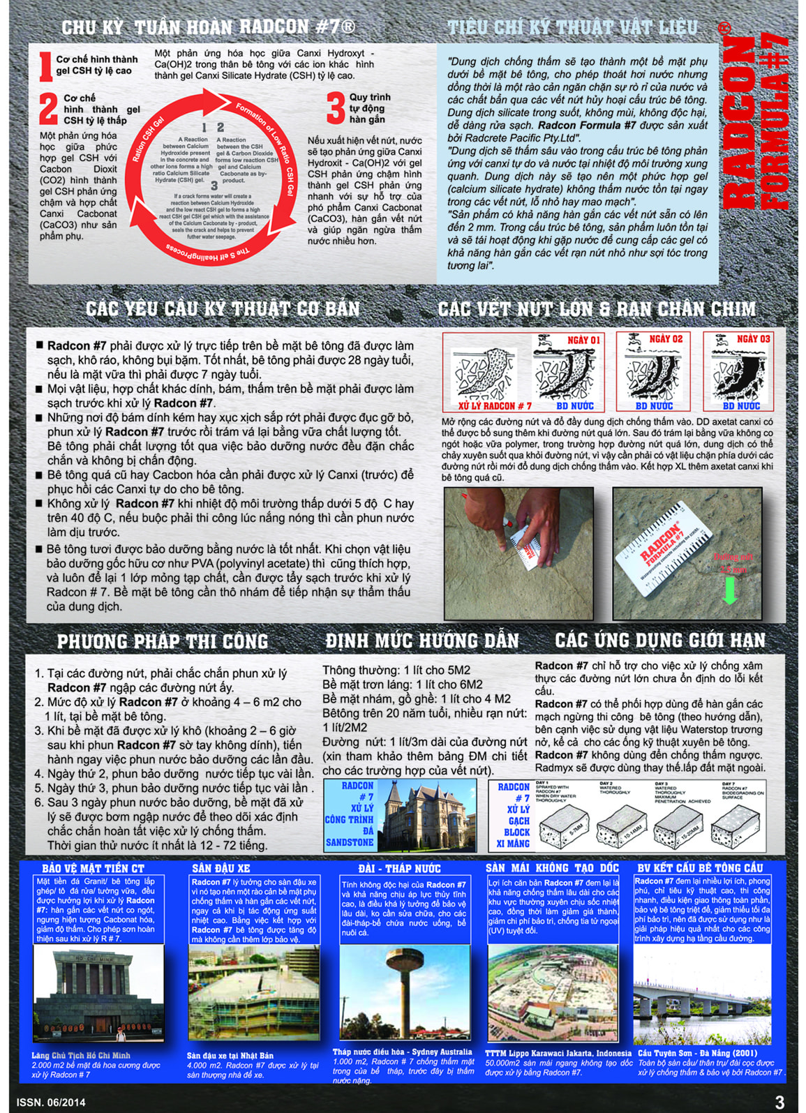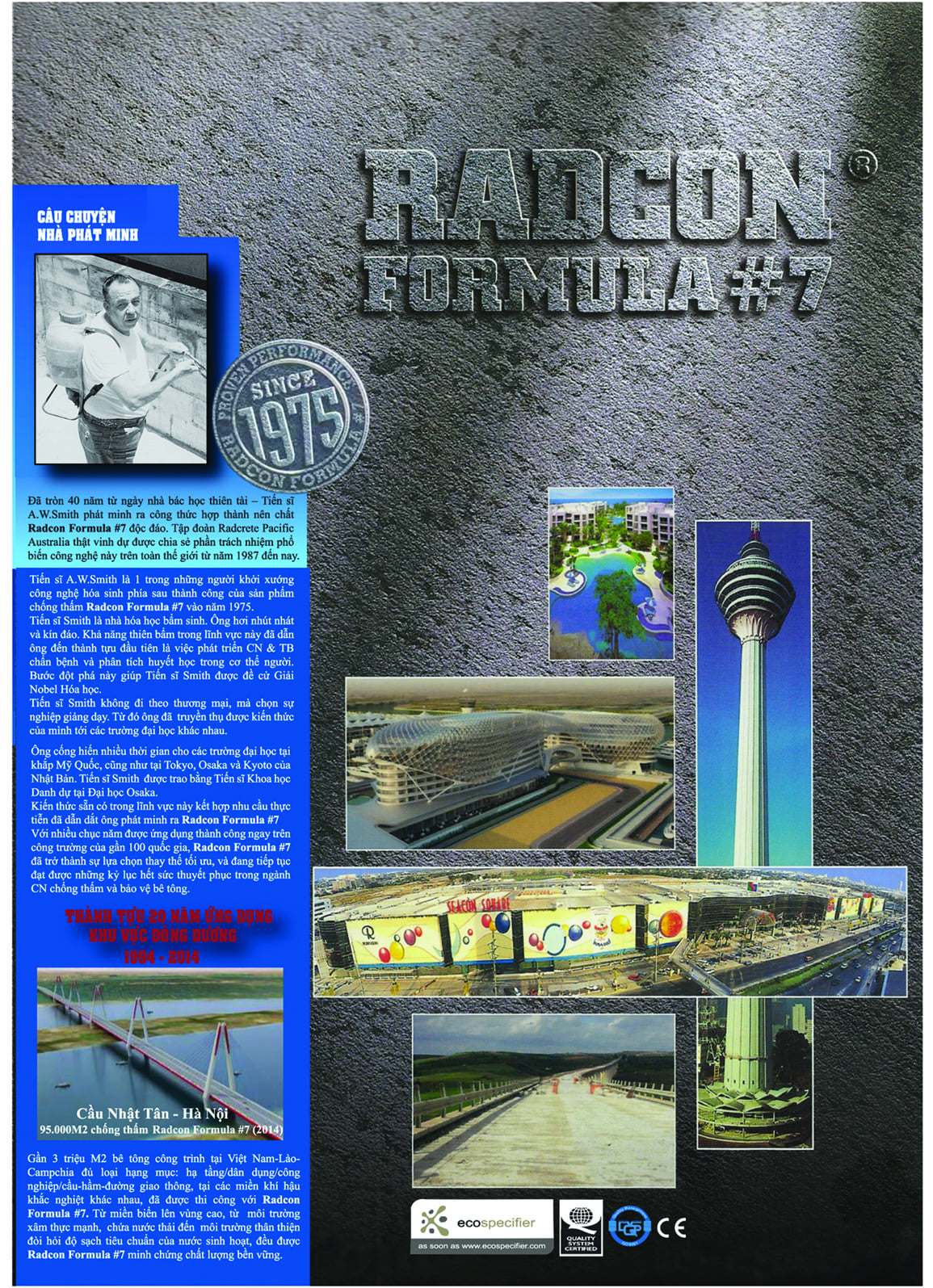 Radcon Formula #7 Là chất hàn gắn thẩm thấu có tính hấp thụ nước, hình thành bởi dung dịch biến tính gốc sodium silicate, cấu tạo bởi một loạt các hợp chất độc quyền (bí mật công nghệ) bao gồm: