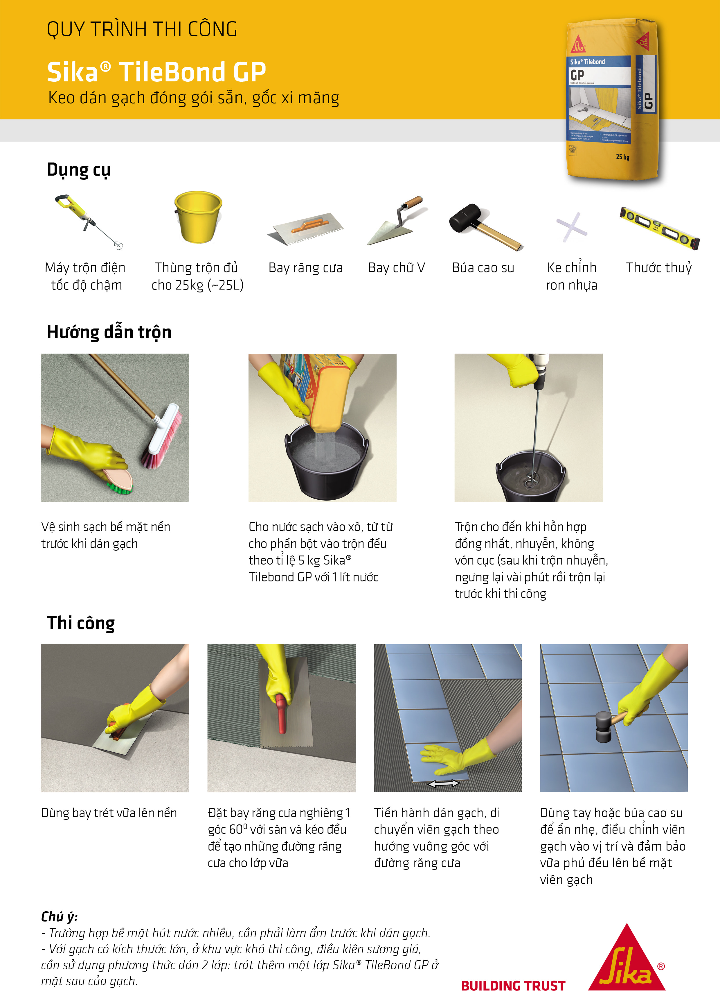 QUY TRÌNH THI CÔNG KEO DÁN GẠCH Sika® TileBond GP
