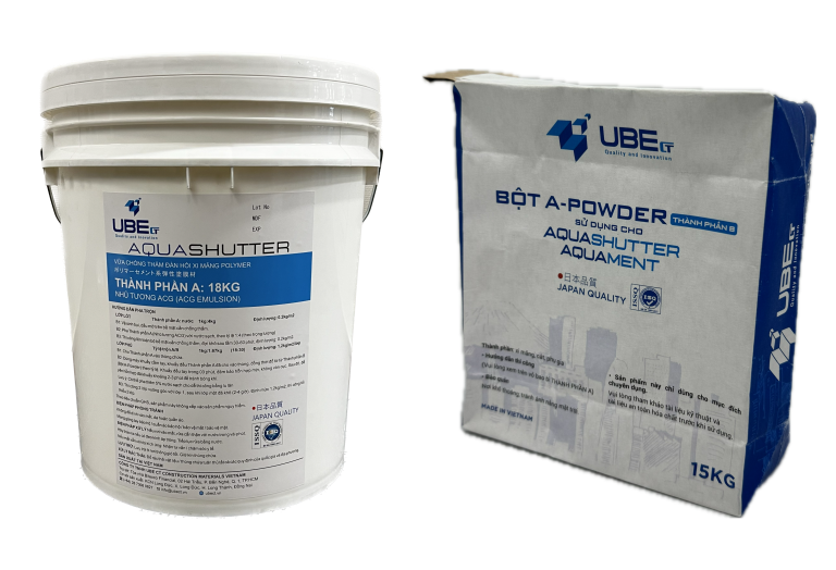 AQUASHUTTER Sản phẩm là vật liệu chống thấm gốc xi măng hai thành phần (xi măng – polyme), sử dụng bằng cách trộn nhũ tương nhựa acrylic và phụ gia gốc xi măng đặc biệt. Aquashutter được sáng chế từ công thức kỹ thuật của tập đoàn UBE Nhật Bản, và được sử dụng rộng rãi tại Nhật Bản hơn 20 năm.