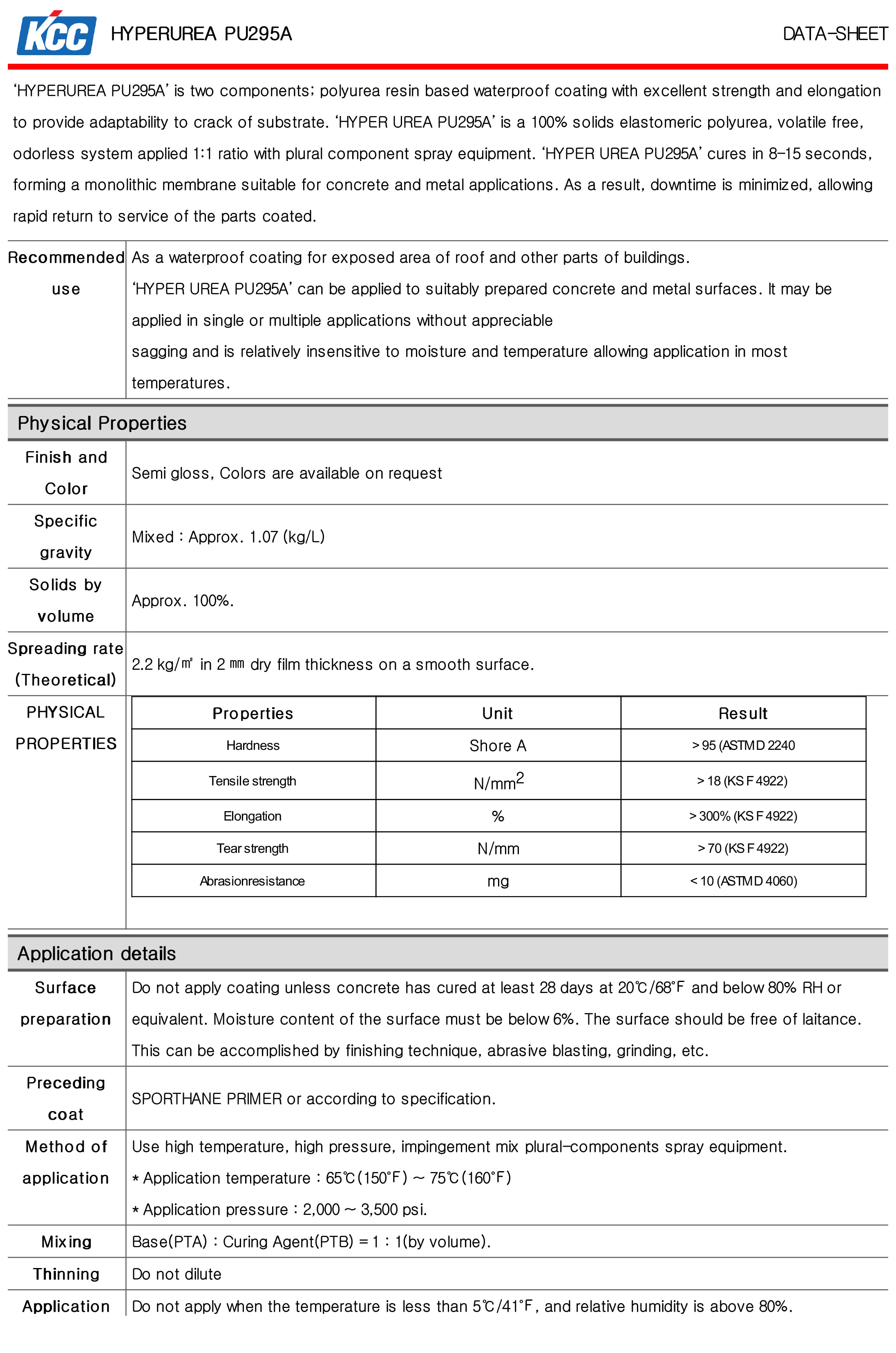 Mô tả KCC HYPER UREA PU295A