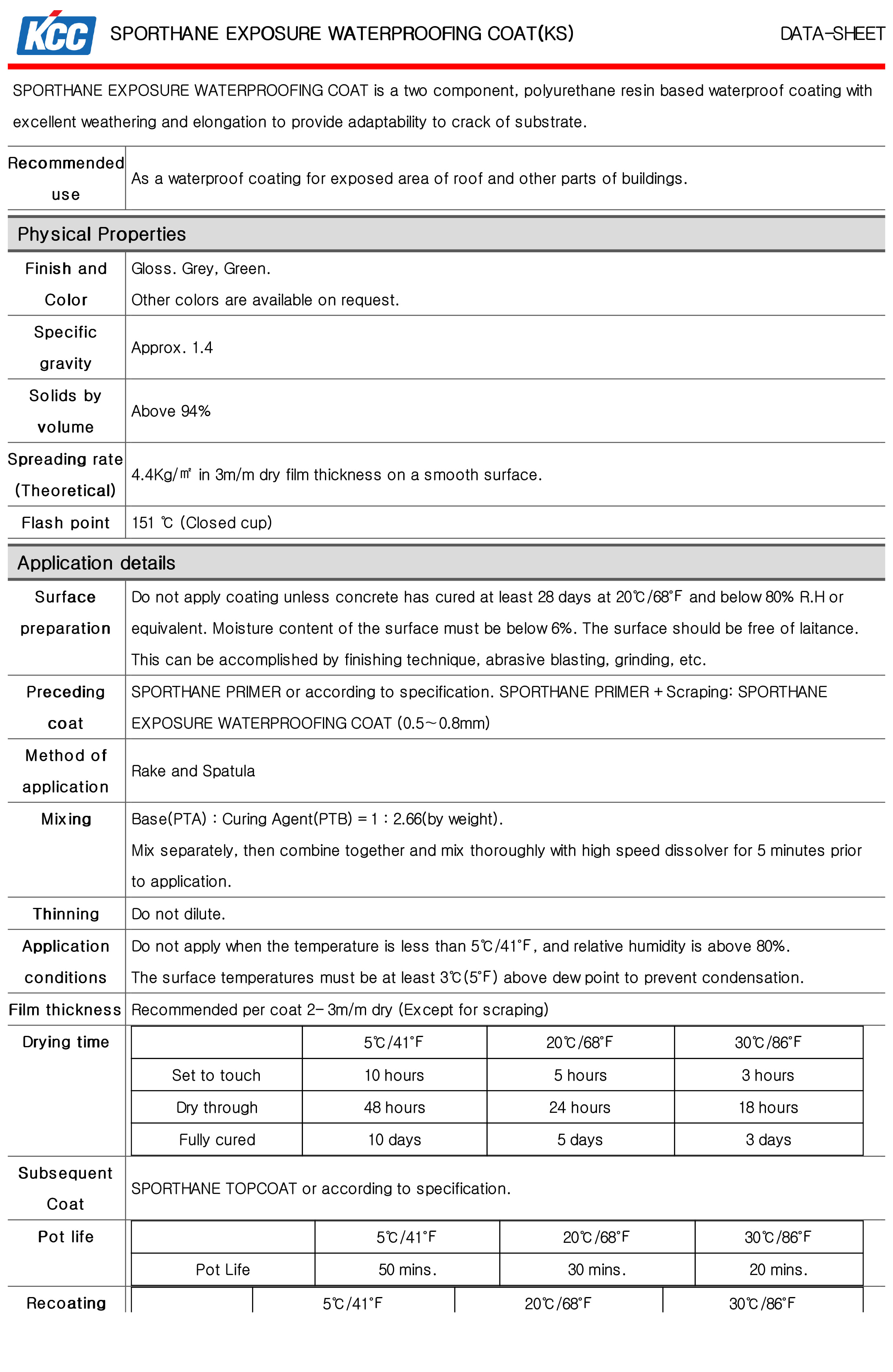 Mô tả KCC SPORTHANE EXPOSURE WATERPROOFING