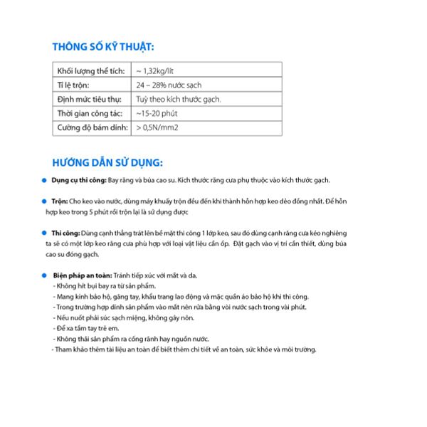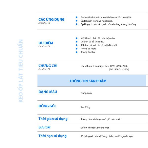THÔNG SỐ KỸ THUẬT KEO DÁN GẠCH CTA OTTER C1
