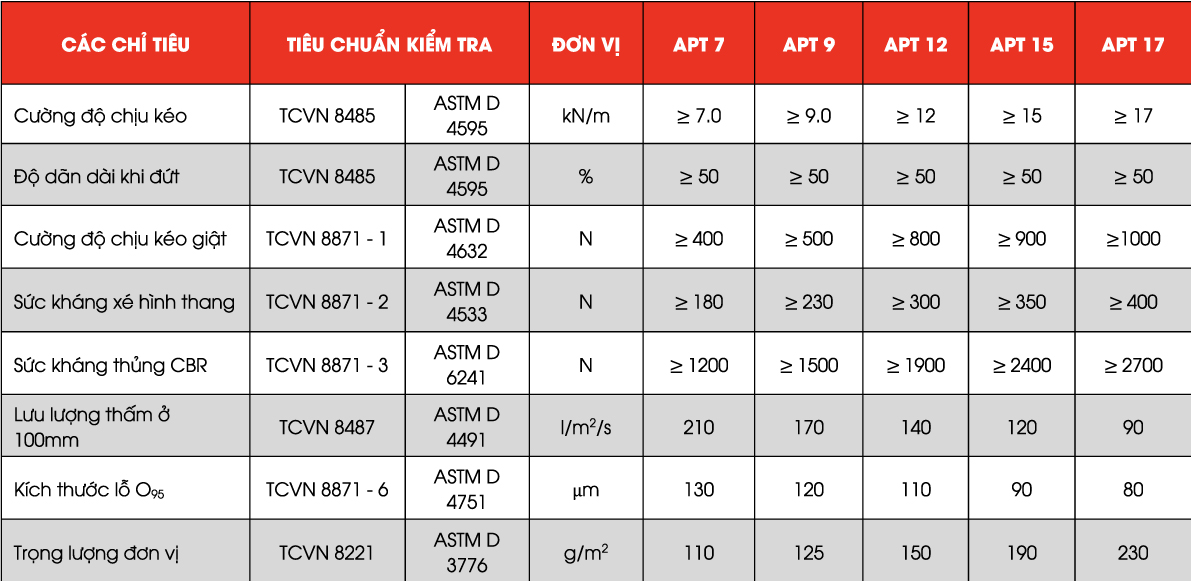 THÔNG SỐ KỸ THUẬT Vải địa kỹ thuật không dệt APT 12